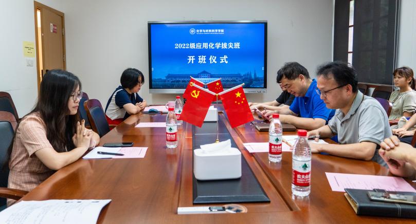 9月12日上午,卫星直播足球 第二届应用化学拔尖班开班仪式在体化楼224C举行。卫星直播足球 党委书记、拔尖班人生导师盛况,院长杨仕平,卫星直播足球 党委副书记、副院长臧艳雯,卫星直播足球 副院长、拔尖班负责人肖胜雄,拔尖班学业导师邓清海,拔尖班荣誉班导师周庆海,辅导员张亚玲,21级拔尖班代表丁旭明以及22级拔尖班全体同学参加开班仪式。仪式由臧艳雯老师主持。