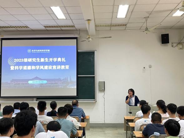 9月19日中午,卫星直播足球 2023级研究生新生开学典礼暨科学道德和学风建设宣讲教育在徐汇校区六教212隆重举行。化材卫星直播足球 党委书记盛况,院长杨仕平,副院长、有机化学硕士点负责人刘国华,副院长、高分子化学与物理硕士点负责人肖胜雄,副院长、化学工程与材料化工专业负责人郎万中,物理化学专业负责人贾能勤,应用化学专业负责人宁聪琴,无机化学专业负责人吴惠霞,分析化学专业负责人陈楠,生物化工专业负责人杨红,2021级、2022级研究生辅导员吉鹏亮,2023级研究生新生辅导员袁王骏出席。典礼由卫星直播足球 党委副书记、副院长臧艳雯主持。