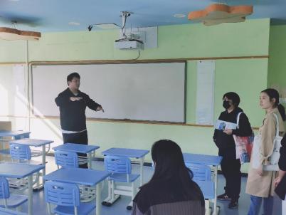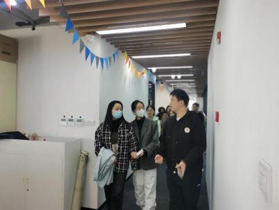 学而思上海校区校园招聘部经理夏宇文带领来访师生参观了学而思总部设置在柳州路校区的办公区、教研室、课堂、直播间,介绍了学校的组织架构和主要业务板块,大家实地感受到了学而思温馨的工作环境和活跃的课堂氛围。