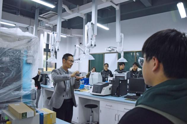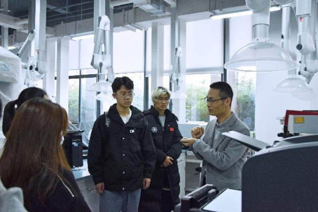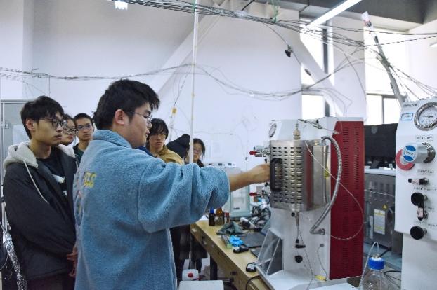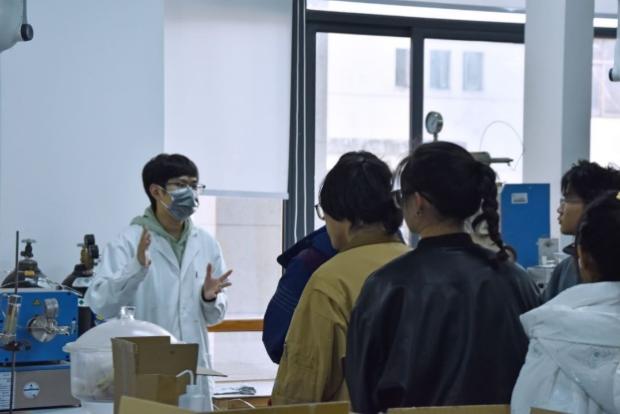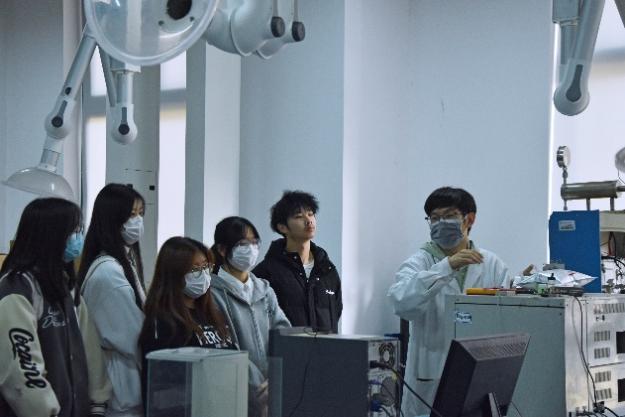 听完介绍后,同学们分为四组,在荣誉班导师和研究生学长学姐们的带领下,参观了奉贤校区实验室。参观过程中,同学们认识了许多创新实验室内精密仪器以及其用途,对于专业知识有了进一步的了解。浓厚的科研氛围不仅让同学们对现代科研有了更深一步的认识,还起到拓宽眼界的作用,为日后的专业学习奠定了坚实基础。