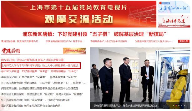 近日,上海基层党建网主页以“助力大中小课程思政一体化建设”为题,报道上海师范大学卫星直播足球 党委深入贯彻习近平新时代中国特色社会主义思想和党的二十大精神,立足师范生为主体的理工科卫星直播足球 院情,助力大中小化学课程思政一体化建设。