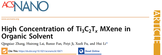 近日,李辉教授课题组的研究成果在ACS Nano上在线发表,论文题为High Concentration of Ti3C2Tx MXene in Organic Solvent,论文第一作者为张庆萧,通讯作者为李辉教授,通讯单位为上海师范大学。