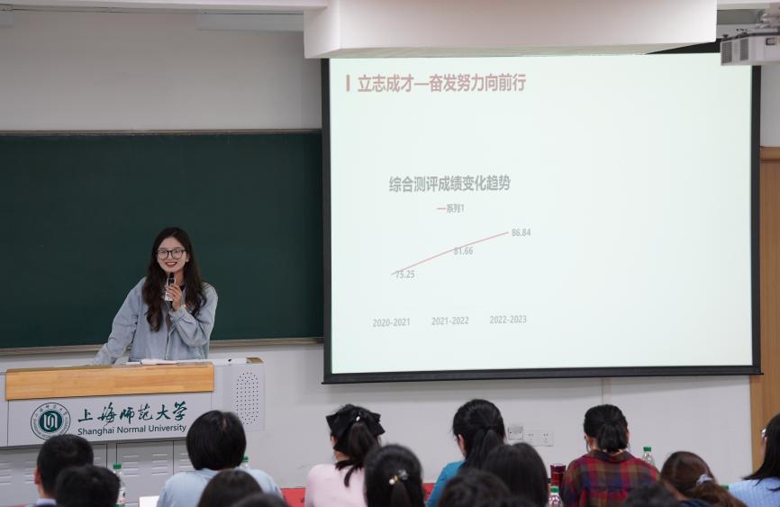 “海压竹枝低复举,风吹山脚晦还明”,校学生党员标兵施泽怡同学从崇德向党、立志成才、砥志研思、善做善成四个方面分享了她的成长故事,并鼓励学弟学妹们做好大学规划,将个人发展融入社会和国家的发展大局中。
