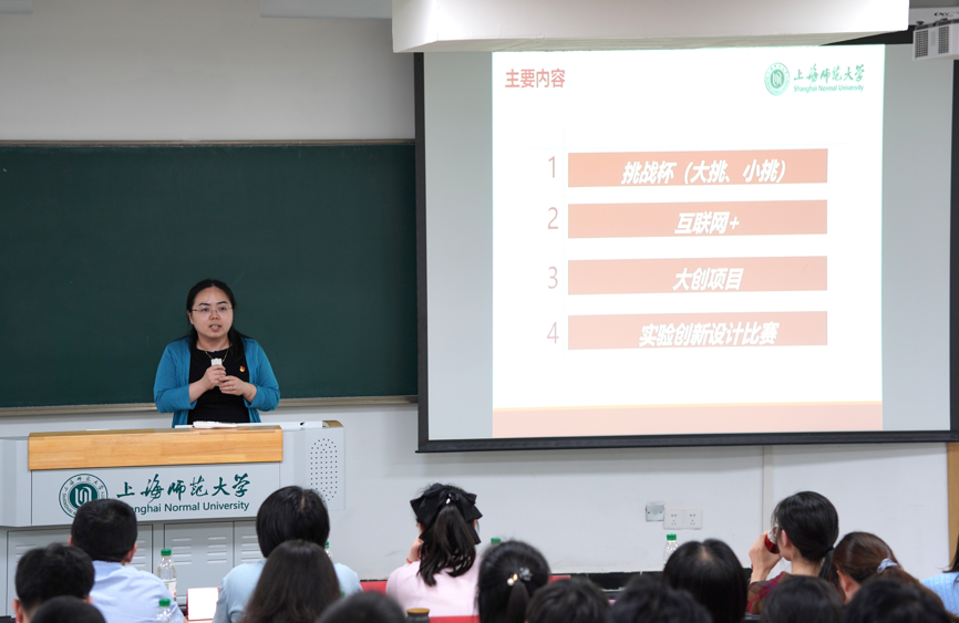 化学教工第一党支部的陈雯雯老师分享了科创竞赛项目相关情况,就挑战杯、互联网+、大创项目及实验创新设计比赛等四类科创竞赛项目说明了各种申报流程、参赛要点及后期工作等。同时,她鼓励同学们努力抓住机遇,不断提升专业能力。