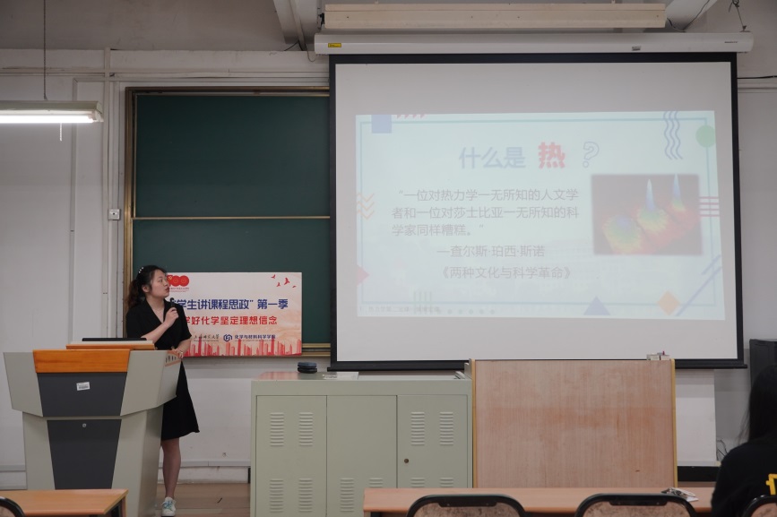 首先是来自2018级化学工程与工艺1班的周玥,她在贾能勤老师的指导下,给入党积极分子们带来“生命以负熵为食”一课。