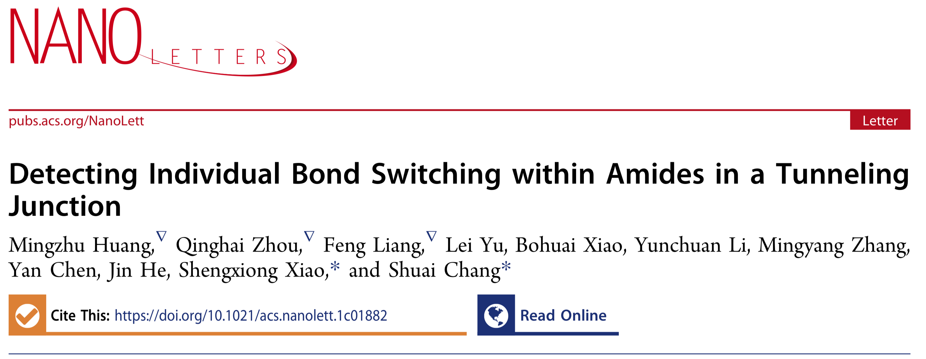 酰胺是构成生命体的重要组成部分,对酰胺键成键形式的监测不仅可以解释酰胺的稳定性,同时对于研究酰胺化合物的结构和反应活性也至关重要。然而到目前为止,在单分子水平上对酰胺键异构化的检测或测量还未见报道。
