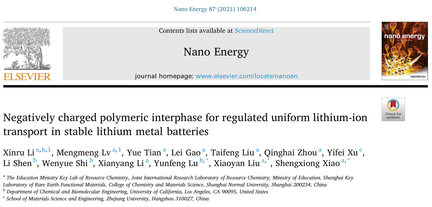 近日,卫星直播足球 肖胜雄教授、刘肖燕讲师在《Nano energy》上发表了题为“Negatively Charged Polymeric Interphase for Regulated Uniform Lithium-ion Transport in Stable Lithium Metal Batteries”的研究论文。作者通过原位自聚反应,合成制备了一种新型的聚合物poly-2,3,7,8-tetrakis((trimethylsilyl)ethynyl)pyrazino[2,3-g]quinoxaline-5,10-dione (PPQ),并将其作为锂金属保护膜。该人工保护膜的优势包括:1)具有负电性框架结构,可排斥电解液中的阴离子;2)含有丰富的官能团,比如炔键、N、O杂原子等,可以有效地提高锂离子的迁移速度;3)即使浸润在电解液中仍具有较高机械强度,可以有效地抑制锂枝晶的生长。恒压极化测试表明,使用PPQ电解质界面膜,锂离子迁移数(tLi+)可高达0.74,电池的库伦效率也得到了提升。该研究为构建稳定的电解质界面膜提供了新的方法,有助于促进安全稳定的锂金属电池的基础研究和实际应用。