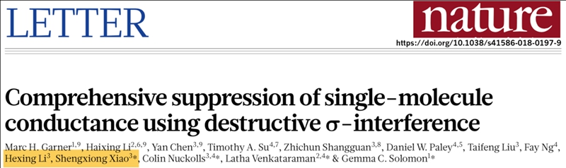 丹麦哥本哈根大学博士生Marc Garner、美国哥伦比亚大学博士生Haixing Li以及上海师范大学硕士生陈艳同学为论文的共同第一作者,上海师范大学肖胜雄教授、美国哥伦比亚大学Colin Nuckolls 教授、美国哥伦比亚大学 Latha Venkataraman 教授、以及丹麦哥本哈根大学Gemma Solomon 教授为论文共同通讯作者。