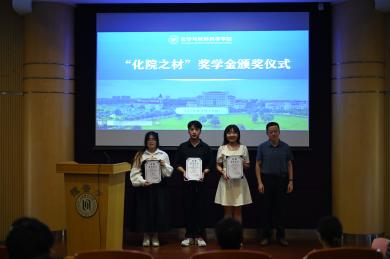 为了进一步提高人才培养质量,激励卫星直播足球 全体学生坚定理想信念、矢志拼搏奋斗,卫星直播足球 设置“化院之材”奖学金,以表彰奖励在学术科研、团学活动、社会实践、服务奉献等各领域表现突出的本研学生。2023-2024年度获奖学生代表2024届毕业生黄菁萃、2022级研究生李昀倬、2021级本科生王瑞上台领奖,卫星直播足球 党委书记盛况老师为他们颁奖。