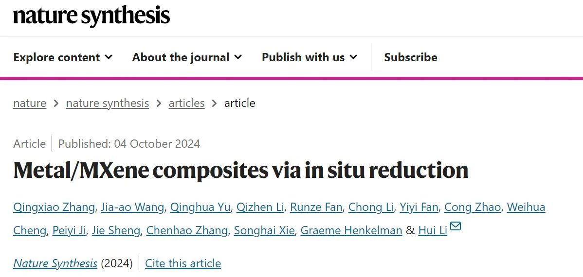卫星直播足球 李辉教授团队在《Nature Synthesis》发表题为“Metal/MXene composites via in situ reduction”的研究论文该研究揭示了金属在二维MXene材料表面原位还原生长的规律成功制备了多种结构可控的金属/MXene复合材料为催化、传感、生物技术等领域提供可定制化的新材料选择。