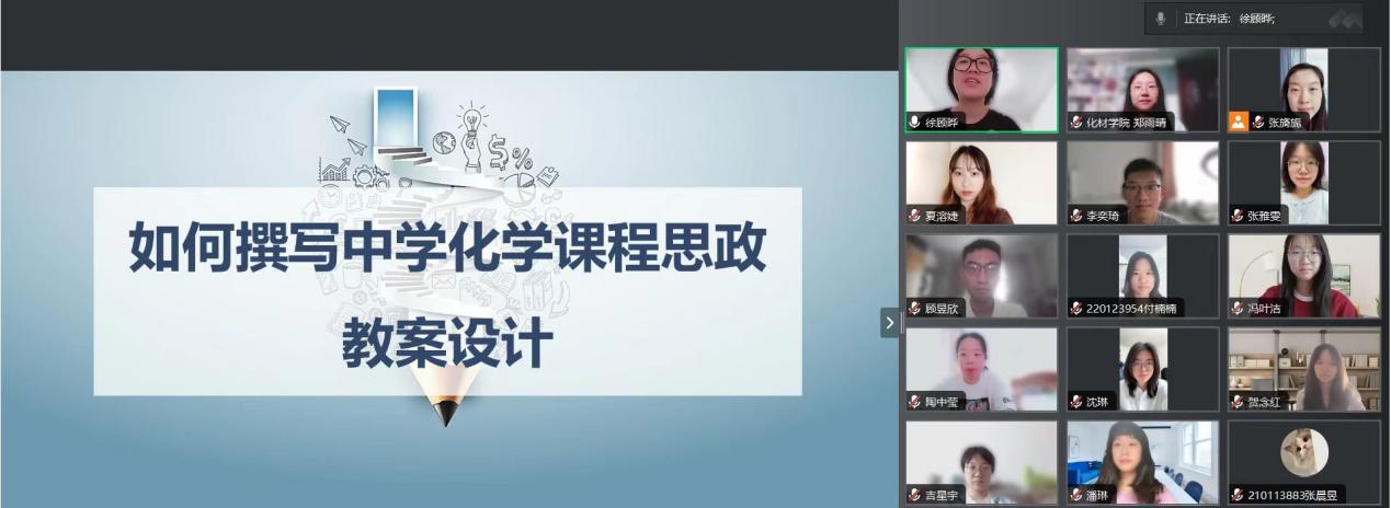 郑雨晴老师从教学内容分析、学情分析、教学目标教学重难点、教学与评价思路、教学流程、教学详细过程各方面为学生讲师展示了中学化学课程思政教案设计。郑老师从一线中学化学教师的角度强调了教案设计的重难点,例如:教学目标的设定参考课程标准,确保教学的科学性和有效性学情分析涵盖已知点、障碍点和发展点,使教学更具针对性在教学内容分析中要注重教材内容的位置、地位、承前启后作用教学流程的常规思路等等。作为“学生讲课程思政”第二季的讲师,郑老师也展示了自己的课程思政片段,从二氧化硫造成酸雨的讨论引出党和国家对于生态保护的重视,带领学生循着党和国家的脚步,从课堂走入生活,解决酸雨问题,培养学生可持续发展的意识。郑雨晴老师为中学化学课程思政教案设计提供了具体的方法和思路,有助于学生讲师将课程思政更好地融入教学实践中。