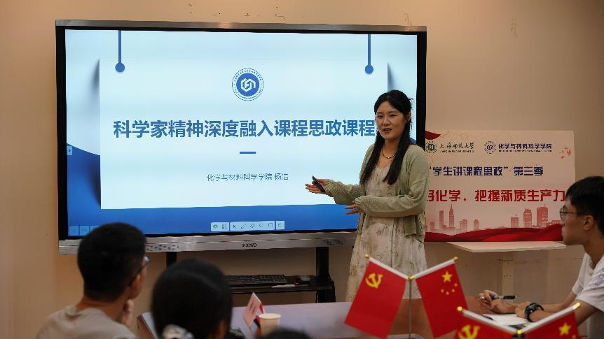 为提升第三季“学生讲课程思政”活动质量,卫星直播足球 为学生讲师团量身打造“理工科课程思政教学方法论”系列课程,目的是帮助学生讲师进一步了解课程思政相关政策、明确课程思政重要内涵、学会课程思政教学方法、提升课程思政育人能力。第二期课程于9下旬在徐汇校区体化楼 224C开展,上海市普通高中化学教材《化学反应原理》主编竺际舜老师、卫星直播足球 副院长郎万中教授、2024年上海高校思政课教师教学大比武二等奖获得者杨浩老师、上海市新中初级中学郑雨晴老师为同学们带来培训。