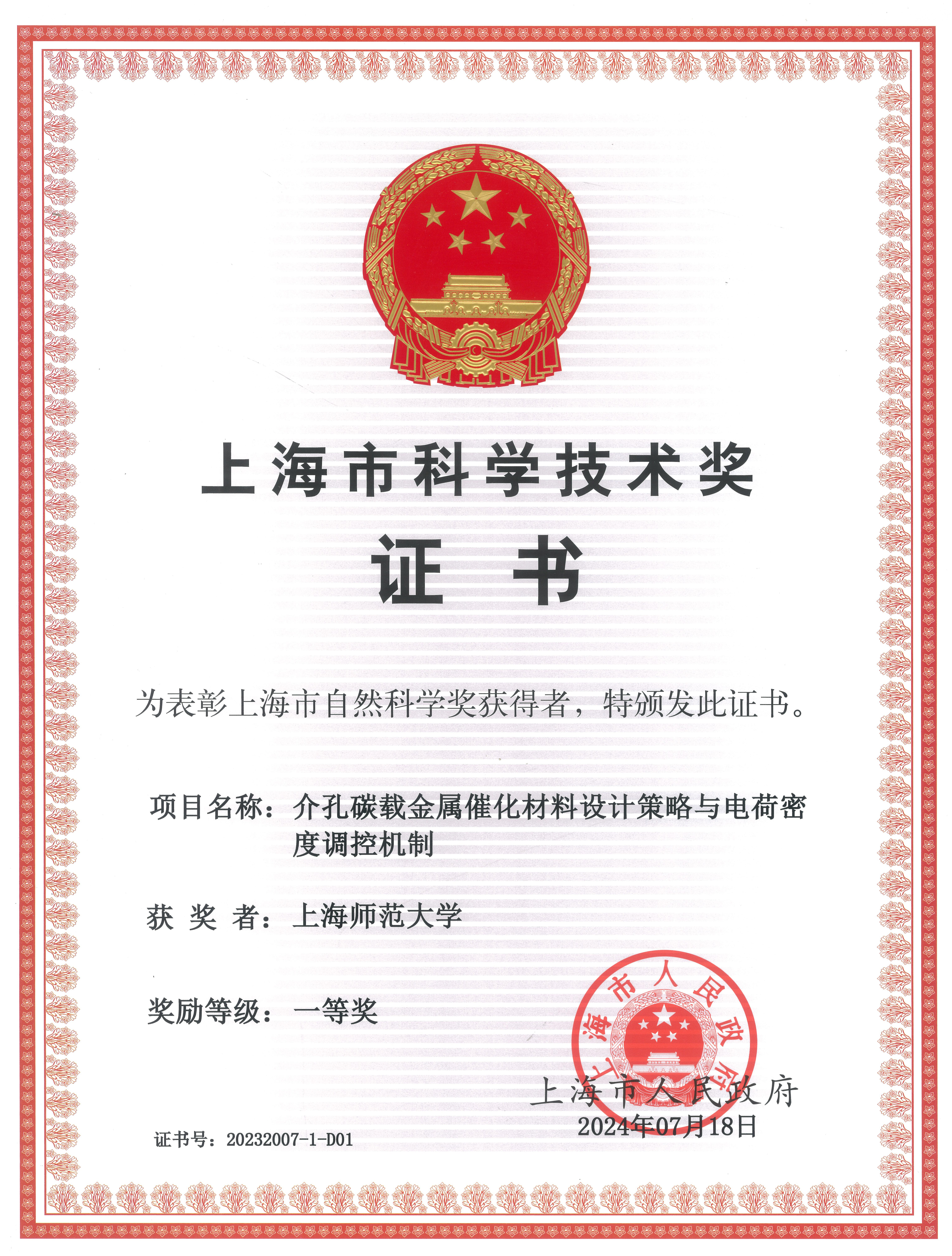 10月23日,上海市科技大会暨科学技术奖励大会隆重举行。科研成果“介孔碳载金属催化材料设计策略与电荷密度调控机制”喜获上海市自然科学一等奖。该项目以上海师范大学为第一完成单位、华东理工大学为第二完成单位,由万颖教授领衔,主要完成人包括上海师范大学卫星直播足球 朱小娟副研究员、孙雅飞博士、段林林博士,华东理工大学段学志教授。