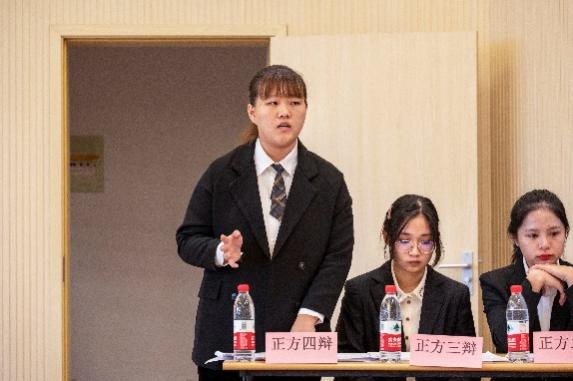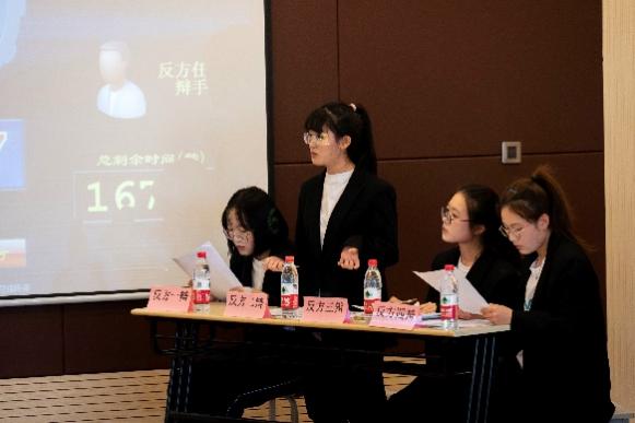在紧接着的申论质询环节和质询小结中,双方辩手毫不相让,步步紧逼,以严谨的态度挖掘对方的漏洞。