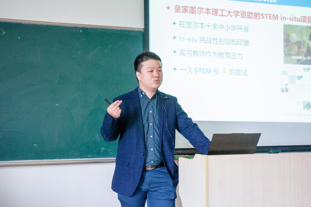 赵老师以STEAM教育的历史发展为出入点为同学们讲解了STEAM的五大学科素养(科学、技术、工程、艺术、数学)及核心特征(跨学科、趣味性、体验性、情境性、协作性、设计性、艺术性、实证性、技术增强性、教学相长性),并将国外STEAM教育与我国的STEAM的教育实际情况进行比对,指出我国在STEAM教育领域发展迟,国家政策指示性不明确等问题,点明了我国在STEAM教育邻域摸着石头过河的现状,但赵老师最后也深情期望在座同学以及未来的教育工作者能在社会硬实力基础完善的前提下改变软文化孱弱的局面。STEAM教育的未来在青年教师,赵老师也希望所有希望从事教育行业的同学从教学理念,教学技巧,自身专业知识等方面发展自己,将自身培养成未来社会需要的教师,提高自身的核心竞争力。