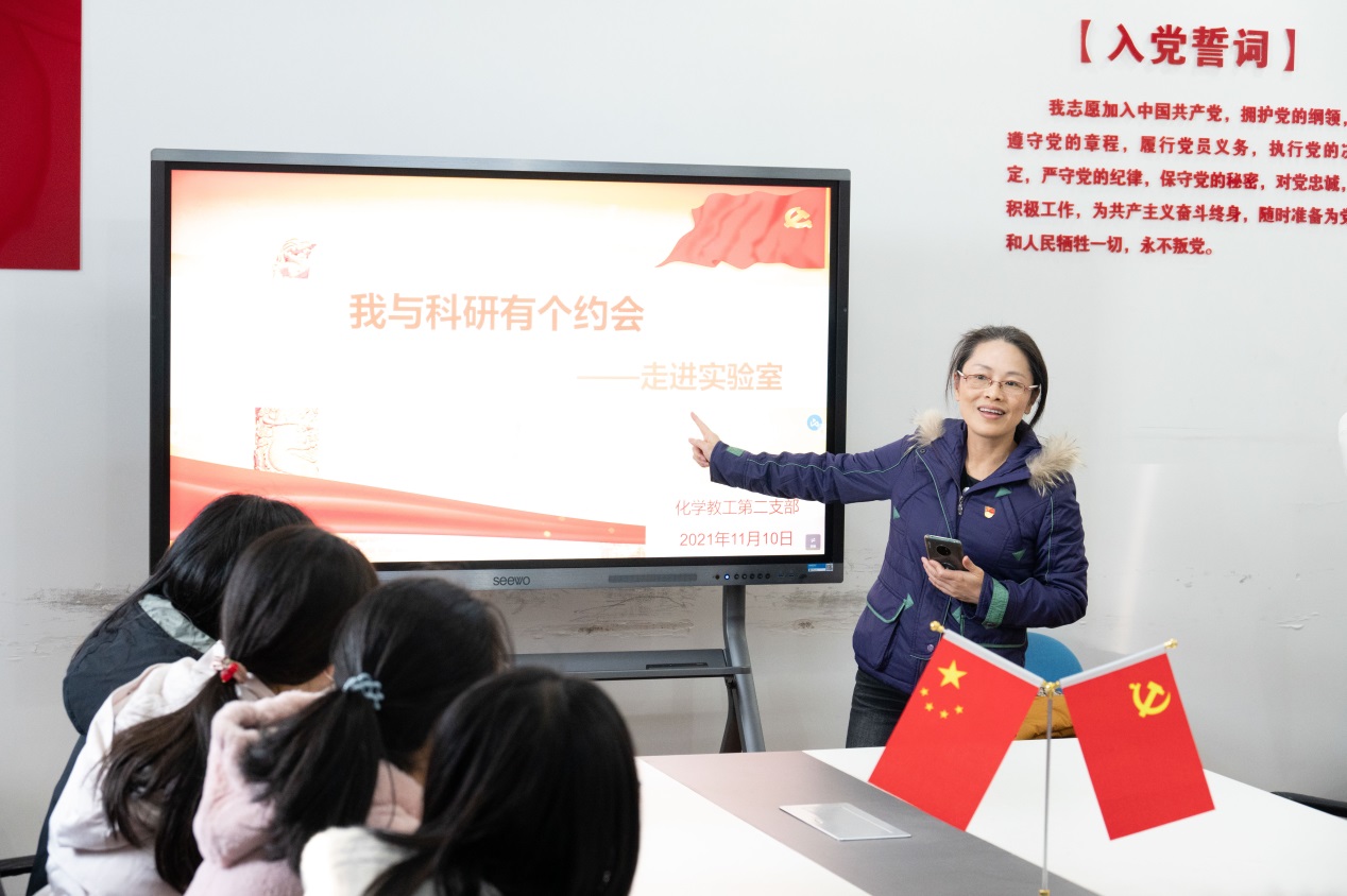 2021年11月10日下午,卫星直播足球 化学教工第二党支部“我与科研有个约会——走进实验室”活动在徐汇校区分析化学硕士点实验室顺利举行。化学教工第二党支部10余位专业教师和分析化学硕士研究生,为参与活动的40余名同学们进行了生动的现场讲解和演示。