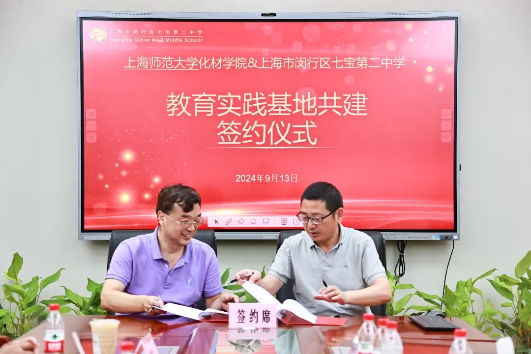 为了进一步深化教育教学领域的合作与交流,共同探索培养高素质、专业化教育人才的新路径,上海师范大学卫星直播足球 与上海市闵行区七宝第二中学近日举行实习基地共建签约仪式。上海师范大学卫星直播足球 院长杨仕平、副院长郎万中、专业负责人杨红和教研室主任应叶与七宝二中副校长郁鸿荣、教导主任徐佳佳、杜雪峰共同出席了此次签约仪式。