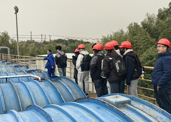 沈老师带领师生参观了废物处理工作流程:废物处理分为三部分——废气、废水、危废。他提到,这三种废物会在新华联进行初步处理,再运输到专门的废物处理公司进行进一步处理。