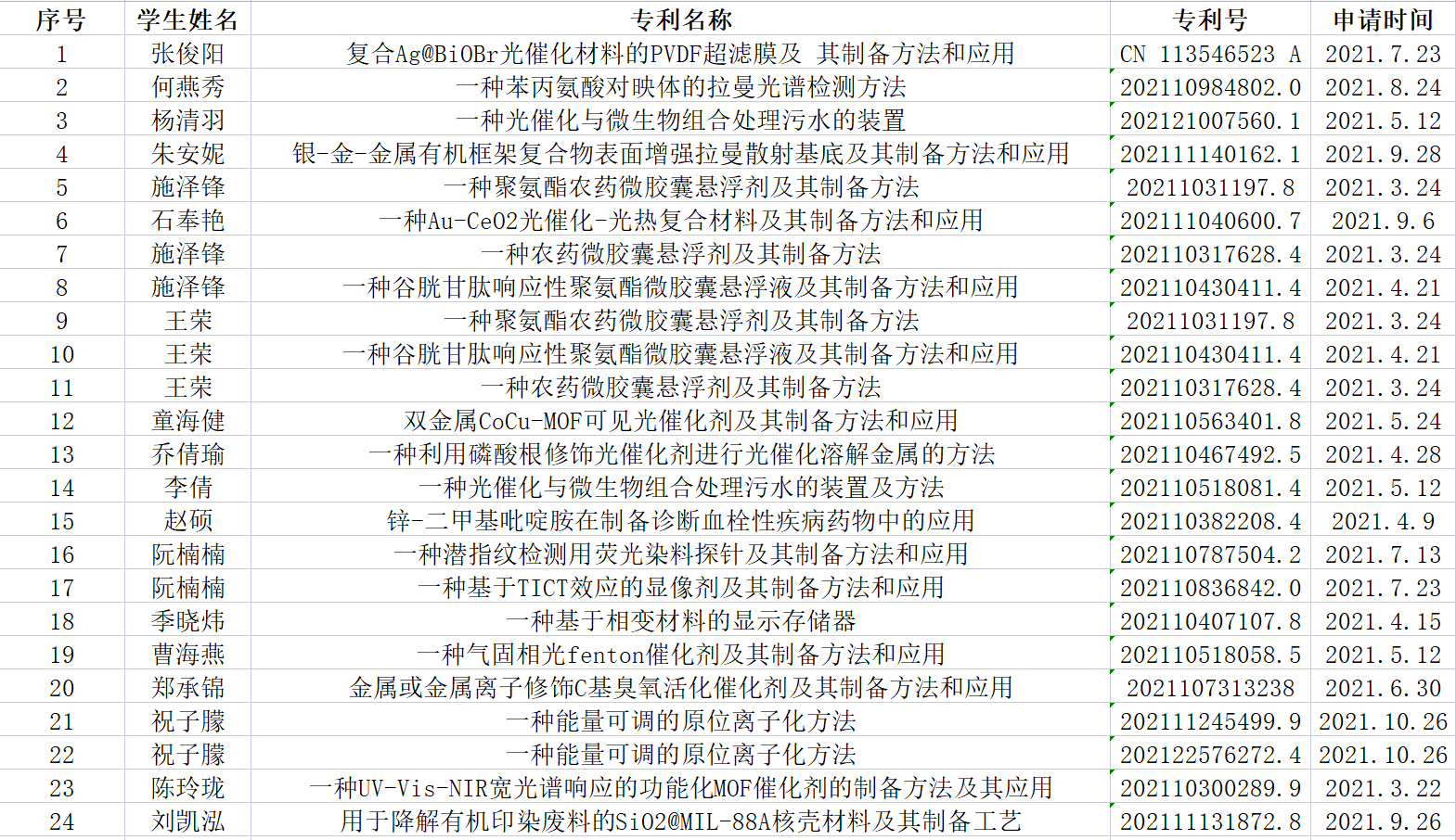 在过去的一年,化材学子迎难而上、踏实进取,学以致用、勇于创新,在市级以上大创项目申报、科研论文及科研专利等方面均取得了突出成绩。