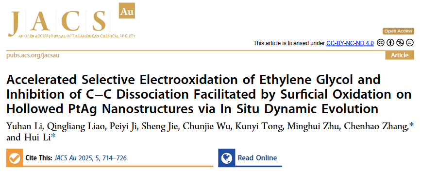 卫星直播足球 李辉教授/张宸豪副教授团队在JACS Au上发表题为“Accelerated Selective Electrooxidation of Ethylene Glycol and Inhibition of C-C Dissociation Facilitated by Surficial Oxidation on Hollowed PtAg Nanostructures via In Situ Dynamic Evolution”的研究论文。通过原位动态电化学策略成功构筑空心PtAg双金属纳米结构,在碱性介质中实现乙二醇高效定向氧化为乙醇酸。上海师范大学为文章唯一通讯单位,2024级博士李毓涵为论文第一作者,李辉教授、张宸豪副教授为论文通讯作者。