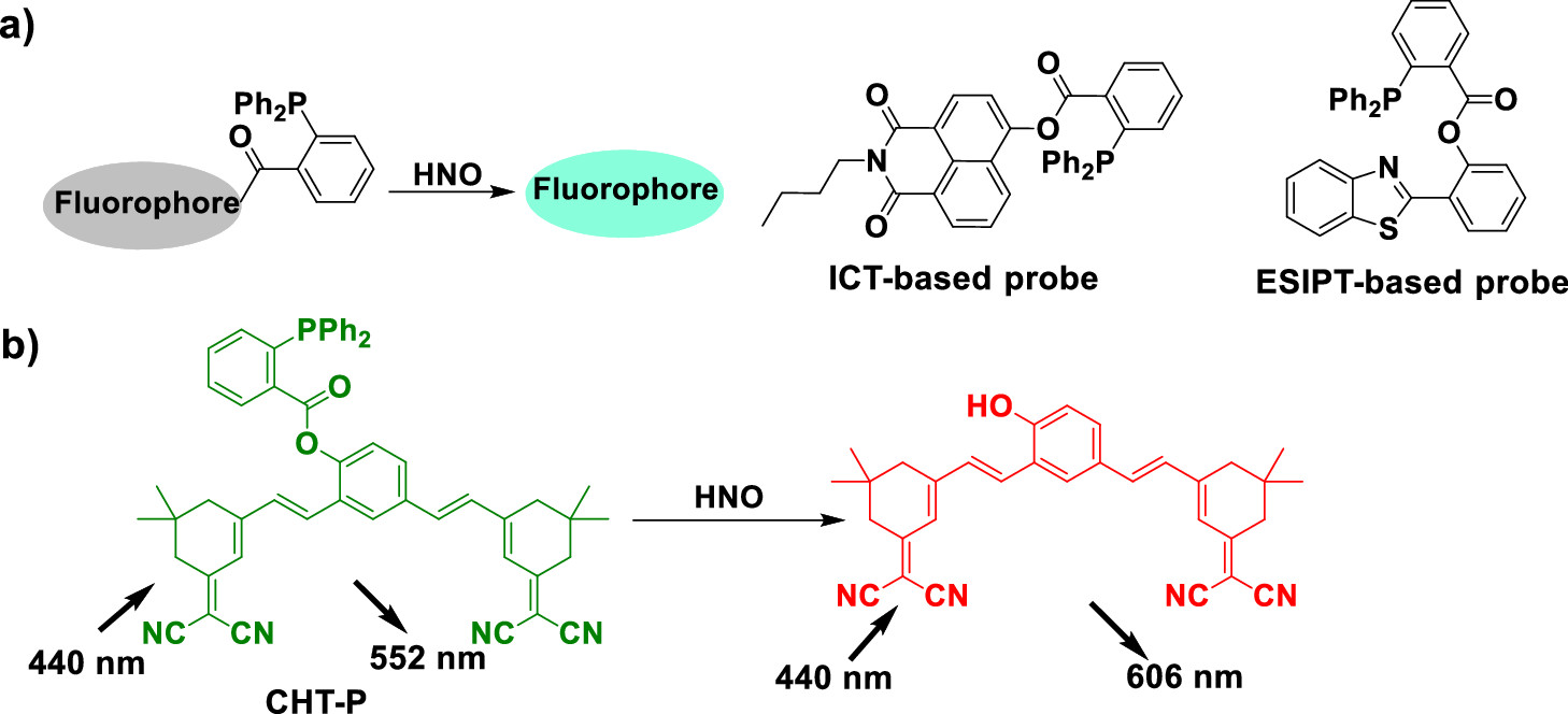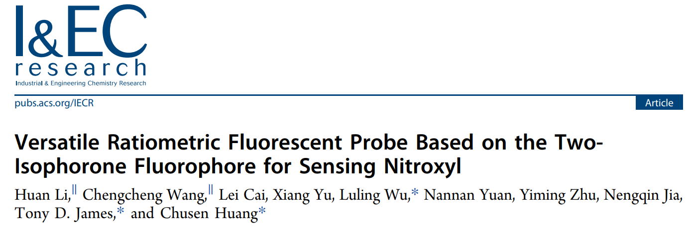 近日,卫星直播足球 黄楚森/贾能勤团队与英国巴斯大学Tony D. James/吴庐陵团队合作,在《Industrial & Engineering Chemistry Research》上发表了题为“Versatile Ratiometric Fluorescent Probe Based on the Two-Isophorone Fluorophore for Sensing Nitroxyl”的研究论文。作者通过将两个异佛尔酮结构共轭修饰在一个染料分子上,创制双异佛尔酮荧光染料母体。发现该染料分子具有特别的双通道荧光信号输出。作者基于此双异佛尔酮荧光染料母体构建了能实现比值型检测次硝酸(HNO)的探针分子。由于HNO的特异性响应基团2-(二苯基膦基)-苯甲酸酯具有较强的荧光淬灭特性,导致目前大多数基于此基团设计的探针分子在检测HNO时候的信号很难表现出较好的比值型特征。而基于双异佛尔酮荧光染料的探针分子在识别HNO前后表现出明显的单激发双发射特征,在活细胞成像和试纸条上都能实现对于HNO的比值型检测,更有利于在定量检测HNO时增强信号的稳定性。该双异佛尔酮染料母体的发现,也为比值型荧光探针的设计提供了一种全新的染料母体结构和设计思路。