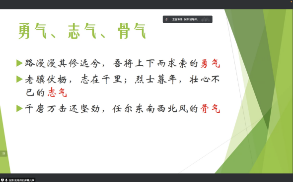 牟娟老师在心理班会上和同学们分享了疫情之下的生活,了解同学们的生活和学习情况,分享了网课的学习经验,并就舒缓疫情期间的情绪提出了一些小建议。