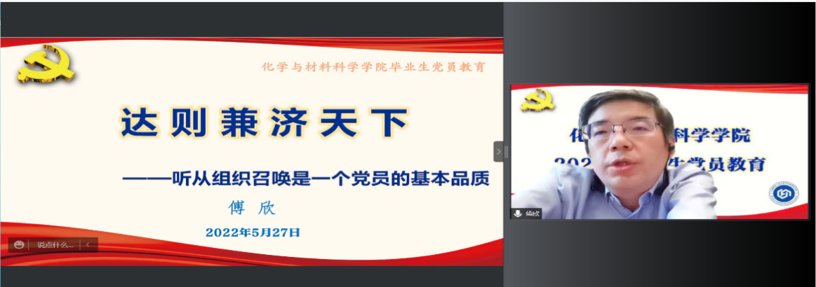 5月27日下午,卫星直播足球 2022届毕业生党员教育活动在线上举行。卫星直播足球 党委邀请首批组团式教育援藏工作队队长、首批万人教育援藏工作队队长傅欣为学生党员上党课。卫星直播足球 党委书记盛况,院党委副书记副院长张皓月,院党委组织员刘雯静,毕业班辅导员,2022届本研全体毕业生党员参加活动,卫星直播足球 非毕业班学生党员列席活动。活动由张皓月老师主持。