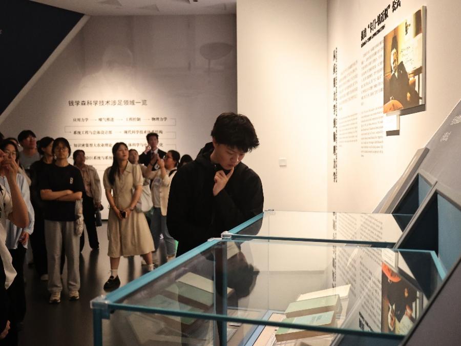 讲座后,在讲解员的带领下,师生们走进了钱学森图书馆,开启沉浸式参访之旅。钱学森的人生轨迹,让同学们对这位科学巨匠的人格风范、卓越事迹和不朽功勋有了深入的了解和学习。