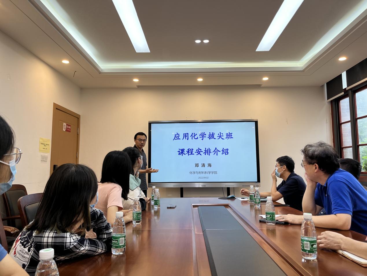 9月2日下午,卫星直播足球 举行首届应用化学拔尖班开班仪式。卫星直播足球 党委书记、拔尖班人生导师盛况,院长杨仕平,党委副书记、副院长张皓月,副院长、拔尖班负责人肖胜雄,拔尖班学业导师邓清海,拔尖班荣誉班导师周庆海,辅导员杨浩以及拔尖班全体同学参加了本次开班仪式。开班仪式由张皓月老师主持。