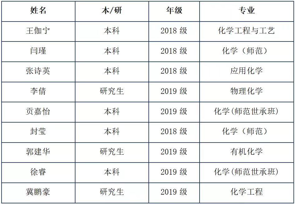 他们中有的连续3年综合测评排名专业第一,在本学科多项科创竞赛中摘金夺银;有的潜心科研,以共同第一作者身份在国际知名化学期刊《Journal of the American Chemical Society》上发表学术论文;有的在大上海保卫战中参加志愿服务超过600小时,相关事迹被学习强国、青年报等媒体报道等等。