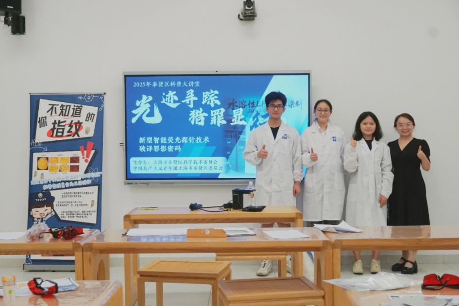 备赛期间,团队成员秉持“精益求精”的态度,全力以赴攻克难关。他们放弃暑假休息时间,多次开展线下集中研讨,反复打磨实验方案与科普展示内容;同时积极走出校园,将理论创新与实践科普相结合。团队先后受邀于上海市奉贤区科学技术协会、共青团奉贤区委员会、中国福利会少年宫等单位,走进街道社区开展了“高校进街道”系列科普活动,既检验了作品的科普价值,也践行了高校服务社会的责任担当。