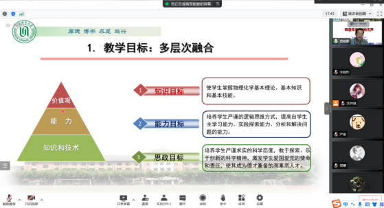 韩愈说过,“师者,所以传道受业解惑也”。贾老师分享的“课程思政”的概念,承载着培养大学生世界观、人生观和价值观的重要作用。我们唯有立足化学专业特点,全面推进化学学科的课程思政建设,才能真正构建起全员全过程全方位育人的大格局。