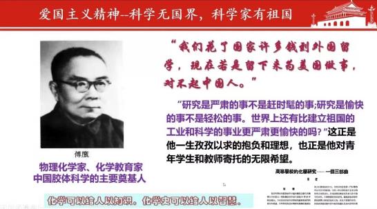 最后,贾老师向同学们分享了《凭栏一片风云起》中凌问岳教授在北平的最后一课,带领同学们观看了这个优秀的课程思政选段。同时,贾老师也通过唐敖庆先生、傅鹰先生等具有浓烈爱国精神的中国化学家故事,激励同学们培养创新能力,勇于担当使命,早日成长为德智体美劳全面发展的时代新人!