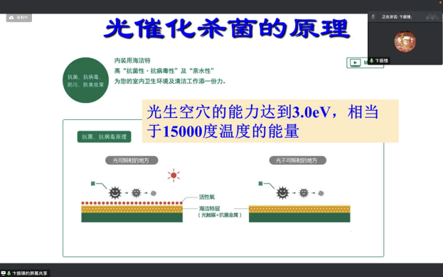 接着,卞老师围绕其研究的课题“光催化清洁提取贵金属”的相关内容进行了深入分享。卞老师讲解了贵金属背景、贵金属研究现状、贵金属在电子器件领域的应用等相关内容,指出贵金属在首饰、医药、电子器件等领域具有重要应用,但是我国贵金属储量较低,深度依赖进口,技术、产业发展受制于人。卞老师介绍了他领带课题组在贵金属回收利用领域取得的进展和成果,分析了“光催化”的概念、原理及技术优势等。卞老师指出,通过“光催化”的方法,可以很好地实现贵金属的绿色回收,高效环保、成本降低,实现了资源的可循环再利用。