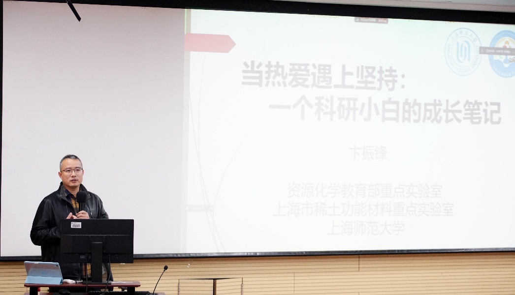卞振锋教授以一段亲身经历切入,和同学们的科研初心产生了共鸣,紧接着他补充道,仅怀热忱是不够的,还需依托平台的支撑。随后,他详细介绍了上海师大卫星直播足球 的优质资源:这里的国家级实验室、省部级科研平台,是科研新手也能上手的“入门工具”;导师团队会带着大家从“好奇试管里的颜色变化”,逐步成长为“能独立设计实验方案”的研究者;也是学生的热爱、平台的支撑和365天的坚持造就了他上海市优秀毕业论文第一名的荣誉。