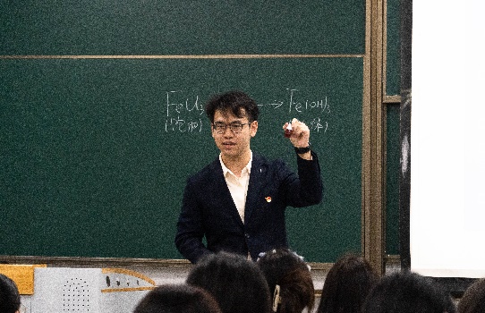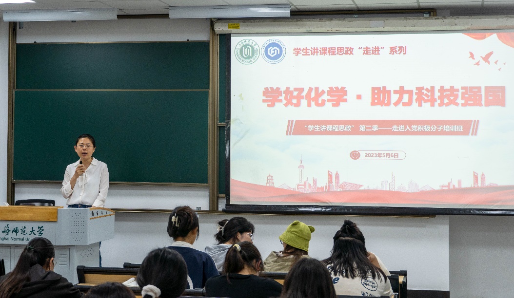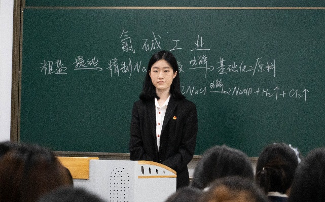 接下来,杨亦颉、张文艳两位学生讲师先后进行了授课。他们立足高中教材中的知识点,通过自信而生动的讲述,带领入党积极分子学习了胶体金、氯碱工业等相关化学知识及重要应用,引导同学们肩负起“学好化学,助力科技强国”的时代重任。