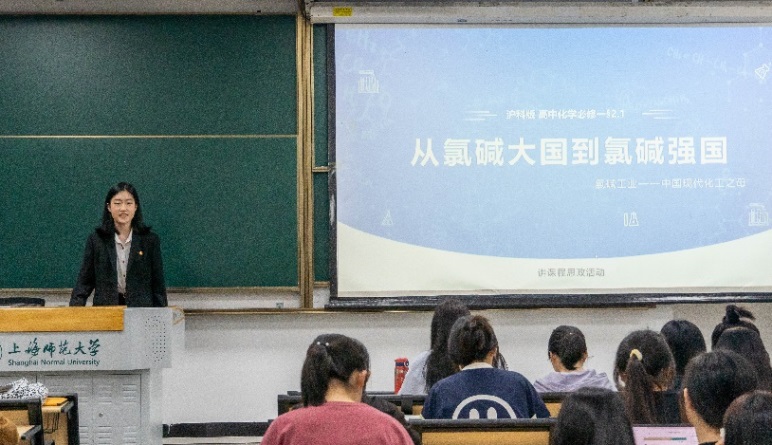 张文艳以“打开我国氯碱工业大门的吴蕴初先生”的介绍入手,结合涉及生活方方面面的氯碱工业产品,引出了课程。她结合以氯碱工业为基础的化工生产图与实验视频,细致深入地讲解了氯碱工业的重要环节——粗盐提纯、电解饱和食盐水,并介绍了离子交换膜。如今工业上广泛使用的离子膜交换法首先在1975年的日本、美国实现工业化,我国虽然氯碱产量高,但几十年来一直需要进口这有着高技术含量的薄薄的离子交换膜。直到2010年,我国在离子交换膜技术上取得了重大突破,成为了全球第3个拥有氯碱离子膜核心技术和生产能力的国家,标志着我们国家从氯碱大国向氯碱强国的迈进。张文艳带领同学们深刻感受到了科技进步对国家发展的重要推动作用,实业家吴蕴初先生发展民族工业的爱国主义精神和刻苦钻研、不断进取的优秀品质值得我们学习。